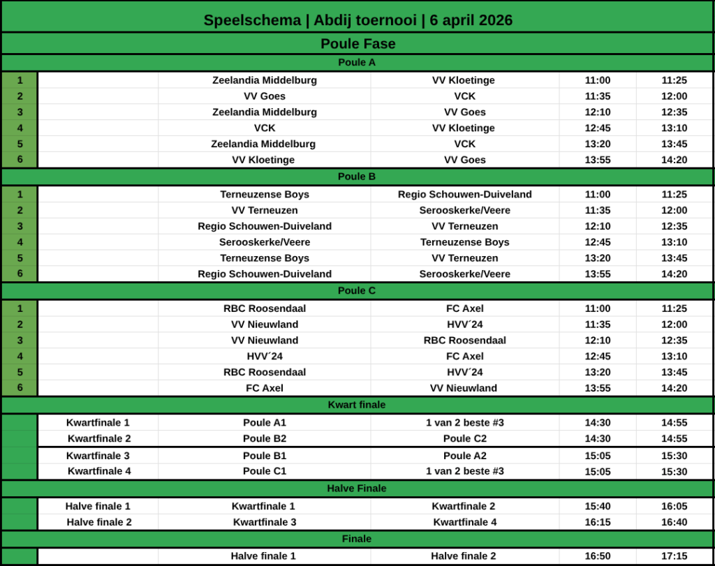 Wij zijn ingedeeld in een poule met Terneuzen, Schouwse Selectie en Terneuzense Boys.