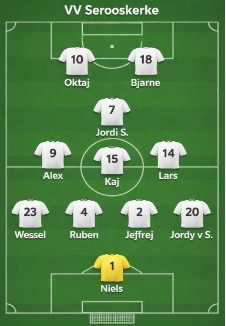 Alle ingrediënten waren aanwezig voor een mooie en spannende voetbalmiddag. Om 14:30 uur werd er afgetrapt, waarbij Serooskerke aantrad in de volgende opstelling: